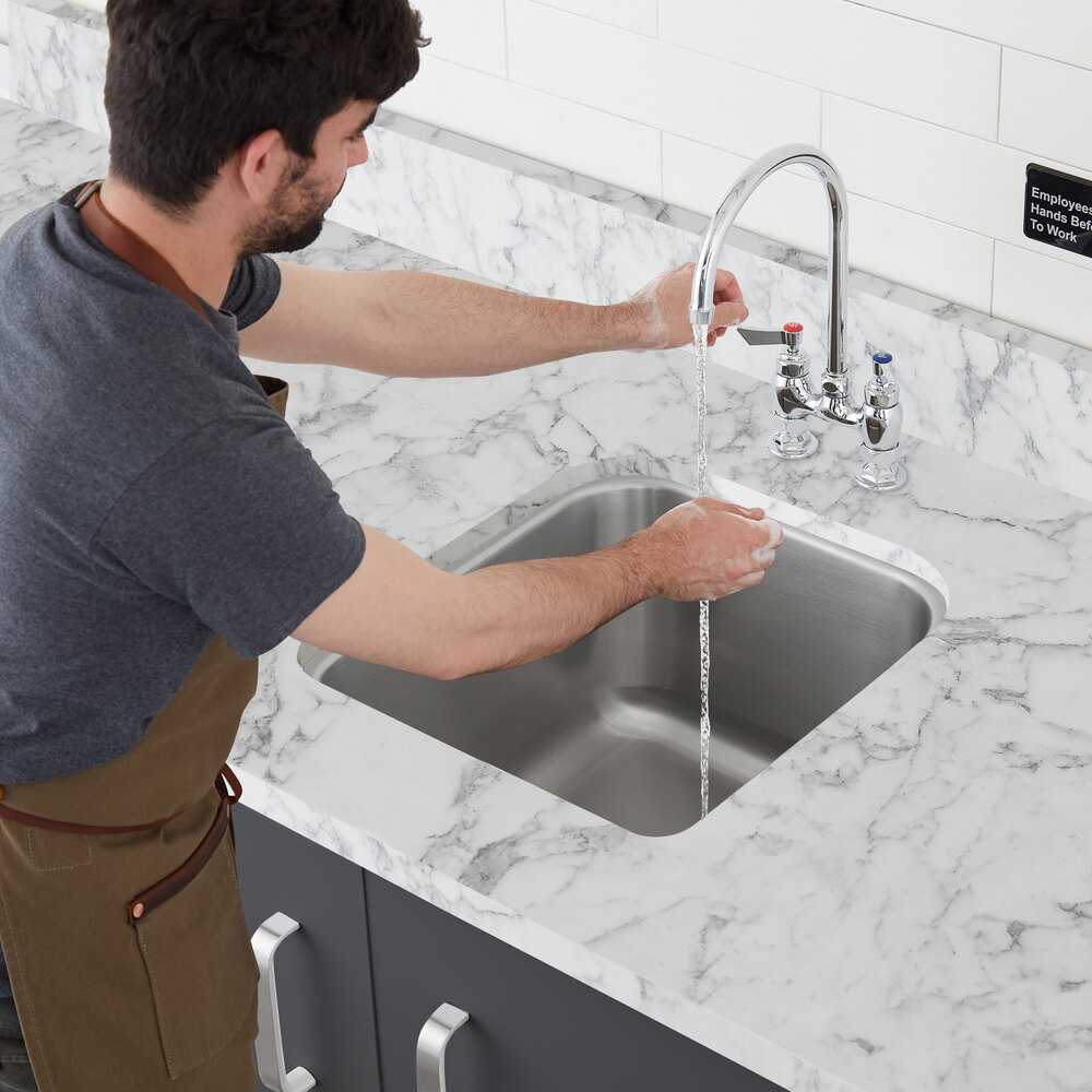It's perfect for use in a front of the house bar area, or as an addition to a prep area where you need an extra handwashing, utility, or dump sink. To help reduce ambient noise in your busy kitchen or bar, this sink comes with sound deadening patches that are ready to install!