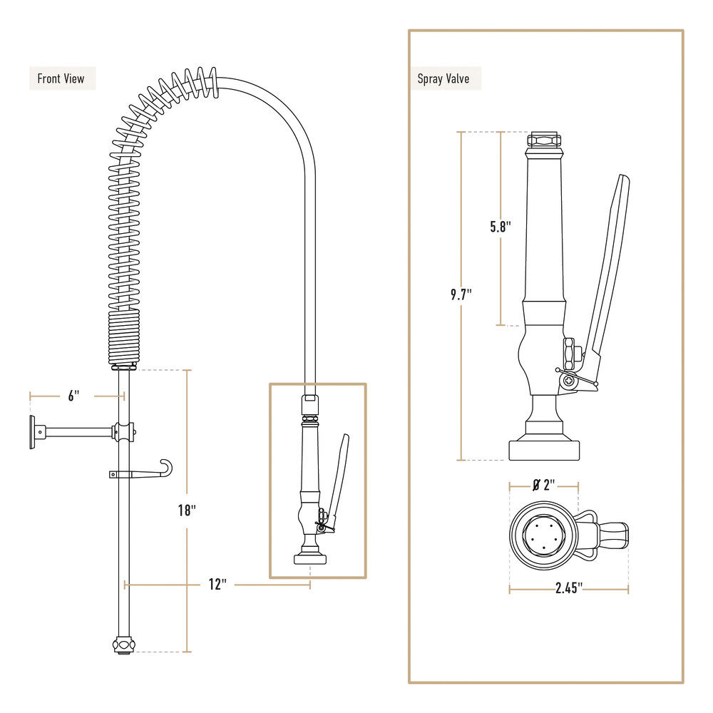 Waterloo 1.15 GPM Pre-Rinse Assembly with Riser, Hose, and Spray Valve