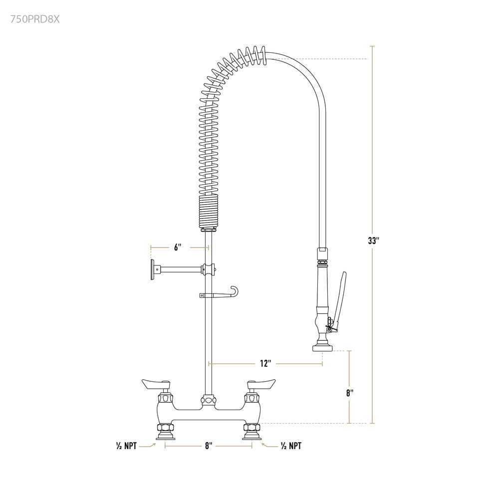 - Item #: 750prd8xWaterloo 1.15 GPM Deck-Mounted Pre-Rinse Faucet with 8" Centers