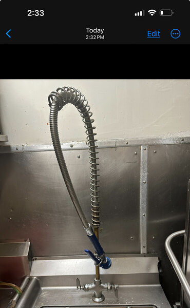 This Waterloo 1.15 GPM pre-rinse spray valve is an excellent choice when you need to replace a broken valve or upgrade an old one! It comes with a hold-down ring so that you can lock the valve into the on position for constant use, and it has a 7/8"-20 UNEF inlet.