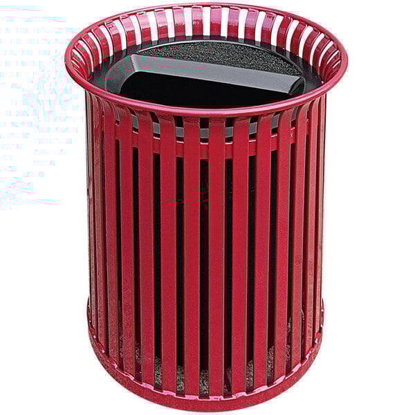 Improve the sanitation and look of any outdoor space with this Wausau Tile MF3225 39 gallon flat steel round outdoor trash receptacle with aluminum ash-n-trash lid. Crafted with perforated Wausau steel, this trash receptacle offers a classic, easily recognizable look. It's powder-coated for weather-resistance, includes a security cable, and can be made even more secure with the addition of an optional single-point anchor (sold separately).