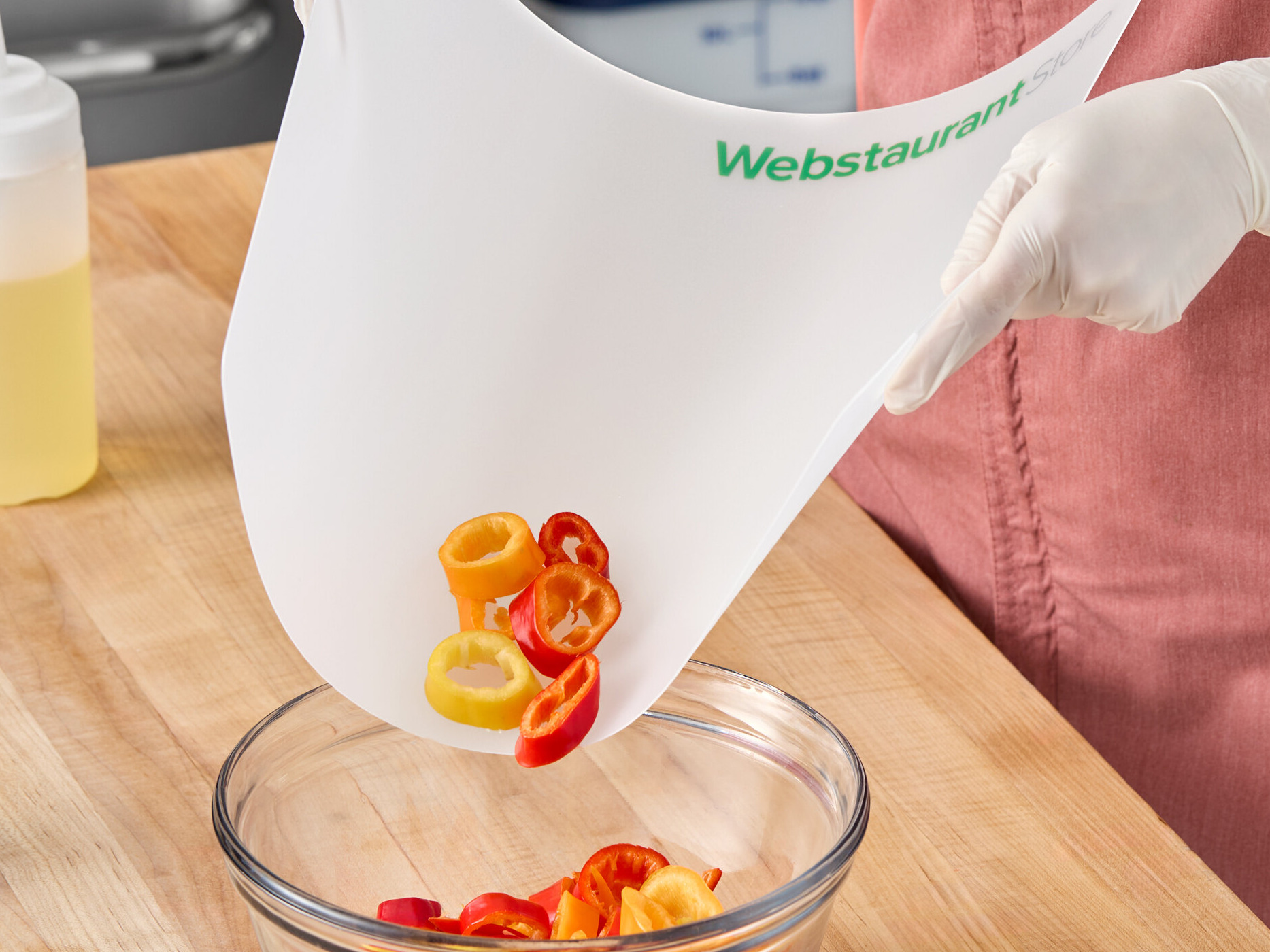 Because it is flexible, it's perfect for adding your chopped ingredients directly into bowls, pots, and pans without any spilling.