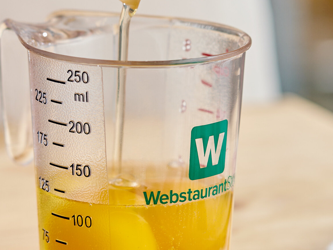 Whether you need a precise amount of water, milk, or juice, this 1 cup measuring cup is sure to do the trick. With its ergonomic and durable plastic construction, this measuring cup will allow you to comfortably and accurately add liquid ingredients to any of your signature recipes. It is an essential and welcome addition to any restaurant, bakery, or catering kitchen.