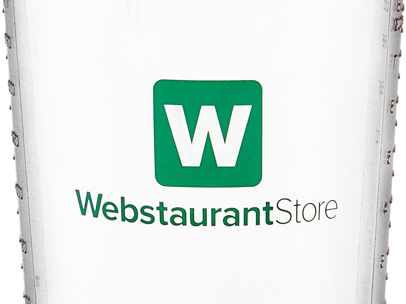 In addition, this measuring cup is accented with the logo of WebstaurantStore in an attractive green color. The logo helps to easily identify the measuring cup from other brands so you know you are getting good quality.