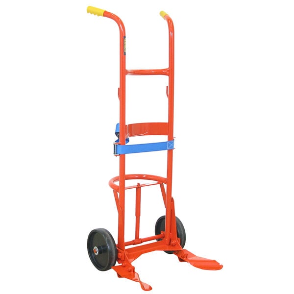The 10" polyolefin wheels ensure smooth handling while the twin handles allow the user to have better control over the truck. A floating axle helps with stability and balancing of the load as you are going over irregular floors, and a safety belt (28" to center of belt, from floor) helps secure drums in place during transport. When not in use or in storage, a kickstand keeps the truck upright without tipping over. And since transporting heavy drums can put a lot of stress on equipment over time, the feet are designed to be replaceable, so that you can save money and switch out only the broken part instead of buying a new drum truck if it breaks. For enhanced safety and easy transportation of goods, try this Wesco Industrial Products drum truck!