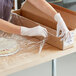 Do not purchase this product. It does not work as advertised at all. Product smokes and has horrible chemical smell when trying to shrink wrap a 14" or 16" take and bake pizza. Bought 10 rolls for quantity discount, can only return 9 rolls