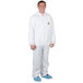Keep your employees' skin and clothes protected with these white microporous coveralls with hood.