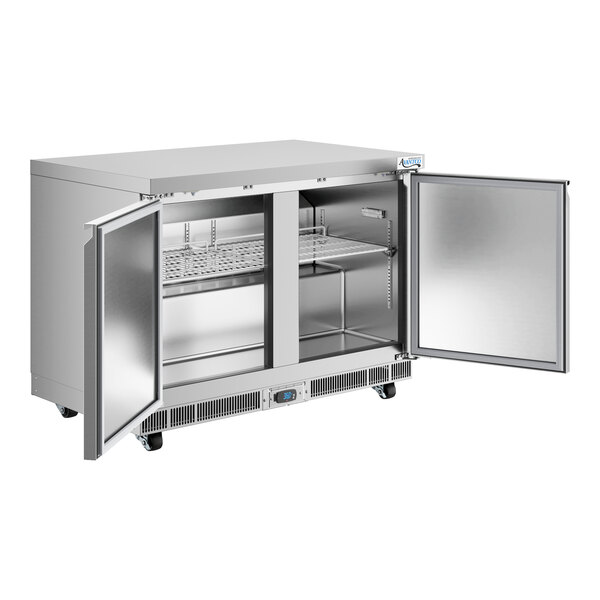 Make cold food storage as convenient as possible with this Avantco VersaHub WiFi-enabled undercounter refrigerator. With a spacious refrigerated portion readily accessible through its doors, the unit opens up to two shelves to help you organize your ingredients and best utilize the 11.3 cu. ft. interior. This model uses the VersaHub platform to provide live notifications, history, and other WiFi-enabled updates. Other helpful features include the state-of-the-art Carel iJ controller, automatic defrosting, and digital temperature control with digital display. For operation, the prep table requires a 115V electrical connection.