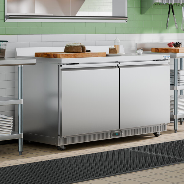Make food preparation as convenient as possible with this Avantco VersaHub WiFi-enabled worktop refrigerator. With a spacious stainless steel worktop surface for slicing, dicing, assembling, mixing, and other food prep tasks, the unit features a 3 1/2" backsplash for wall protection and a refrigerated storage space below. This model uses the VersaHub platform to provide live notifications, history, and other WiFi-enabled updates. Other helpful features include the state-of-the-art Carel iJ controller, automatic defrosting, and digital temperature control with digital display. For operation, the prep table requires a 115V electrical connection.