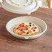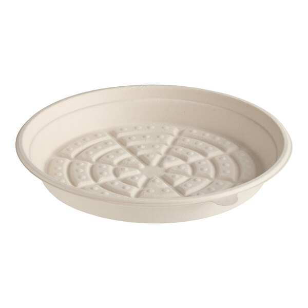 Serve pizza to-go and help the environment too with this World Centric 8" no PFAS added compostable fiber round pizza container base. This container base is constructed of tree-free, renewable plant fiber. Its round shape makes it perfect for holding personal pizzas, and it's great for take-out applications. It can also be used with deli trays, sandwich trays, or even dessert trays (each sold separately)! During the manufacturing process, no PFAS chemicals are added, so your customers will feel safe and satisfied each time you use this product.