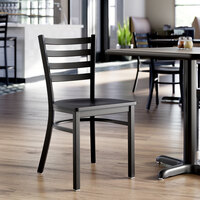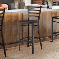 Products You May Need For Lancaster Table & Seating Black Finish Ladder Back Swivel Bar Stool with Black Wood Seat