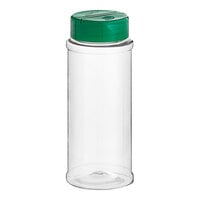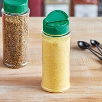 2 Lid Colors8.4 oz. Round Plastic Spice Container and 53/485 Green Induction-Lined Dual Flapper Lid with 3 Holes - 285/Case