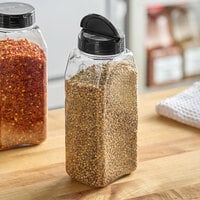 32 oz. Rectangular Plastic Spice Container and 63/485 Black Unlined Dual Flapper Lid with 7 Holes - 96/Case