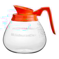 Curtis 70280200406 Crystalline Decaf Glass Coffee Decanter with Orange Handle and Decaf Logo - 24/Case