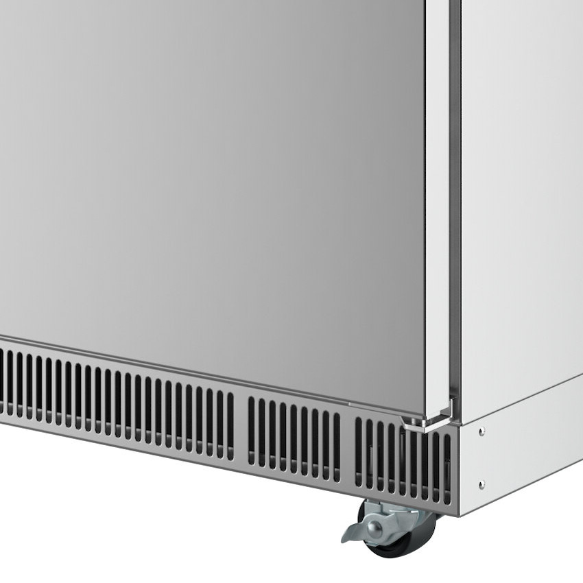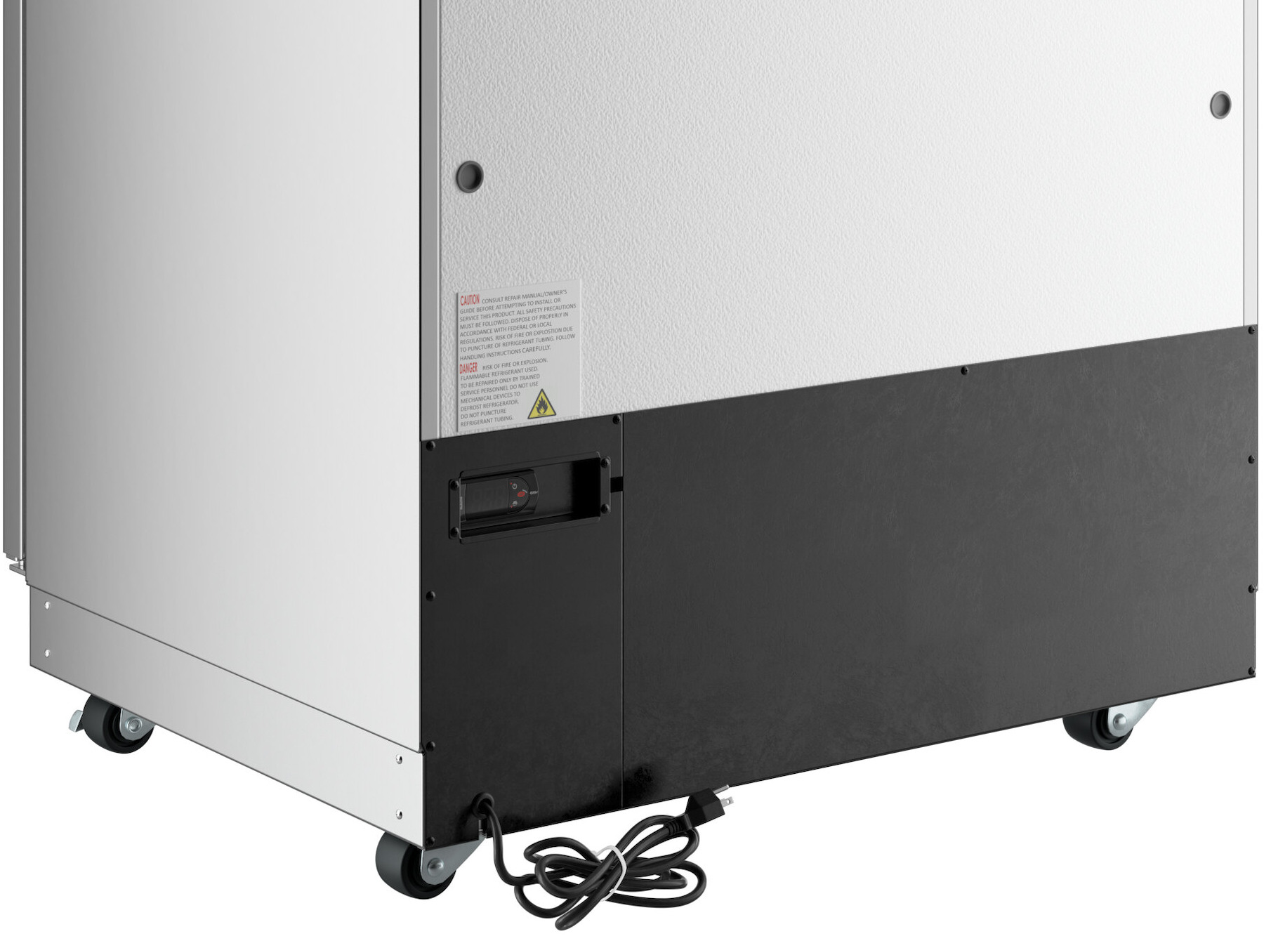 This refrigerator ensures optimal performance by operating with a 1/7 hp refrigeration system that circulates R-290 hydrocarbon refrigerant to maintain temperatures from 33 to 40 degrees Fahrenheit. R-290 refrigerant has an ozone depletion potential (ODP) of 0 and a global warming potential (GWP) of 3. The foamed-in-place polyurethane insulation helps to retain cold temperatures, which ensures that all food held in the unit remains at food safe temperatures and ready for preparation or direct service to customers!