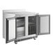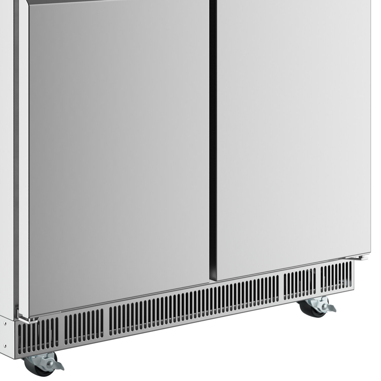 With a spacious stainless steel worktop surface for slicing, dicing, assembling, mixing, and other food prep tasks, the unit features a 3 1/2" backsplash for wall protection and a refrigerated storage space below. The refrigerated portion is readily accessible through the doors, which open up to 2 epoxy-coated shelves to help you organize your ingredients and best utilize the spacious interior.