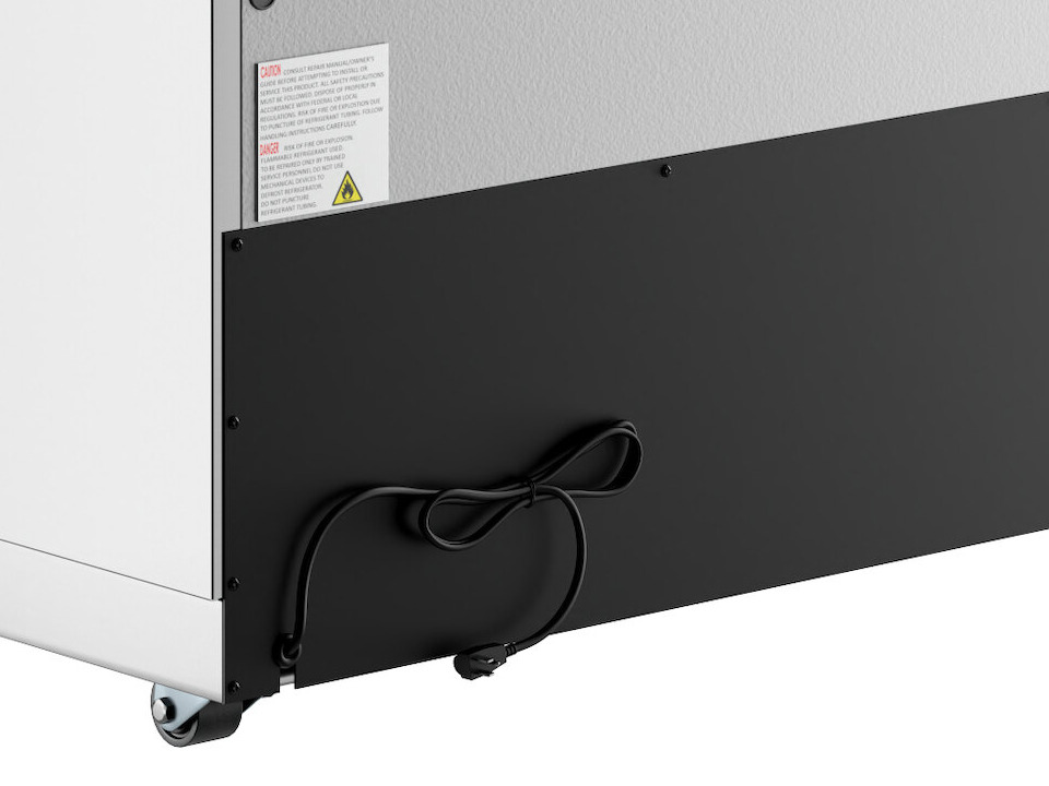 High-quality performance is made possible by the unit's 1/4 hp refrigeration system, which maintains temperatures between 33 and 40 degrees Fahrenheit. It does this by circulating R-290 refrigerant. This specialized refrigerant has an ozone depletion potential (ODP) of 0 and a global warming potential (GWP) of 3.