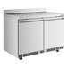 With a spacious stainless steel worktop surface for slicing, dicing, assembling, mixing, and other food prep tasks, the unit features a 3 1/2" backsplash for wall protection and a refrigerated storage space below. The refrigerated portion is readily accessible through the doors, which open up to epoxy-coated shelves to help you organize your ingredients and best utilize the spacious interior.