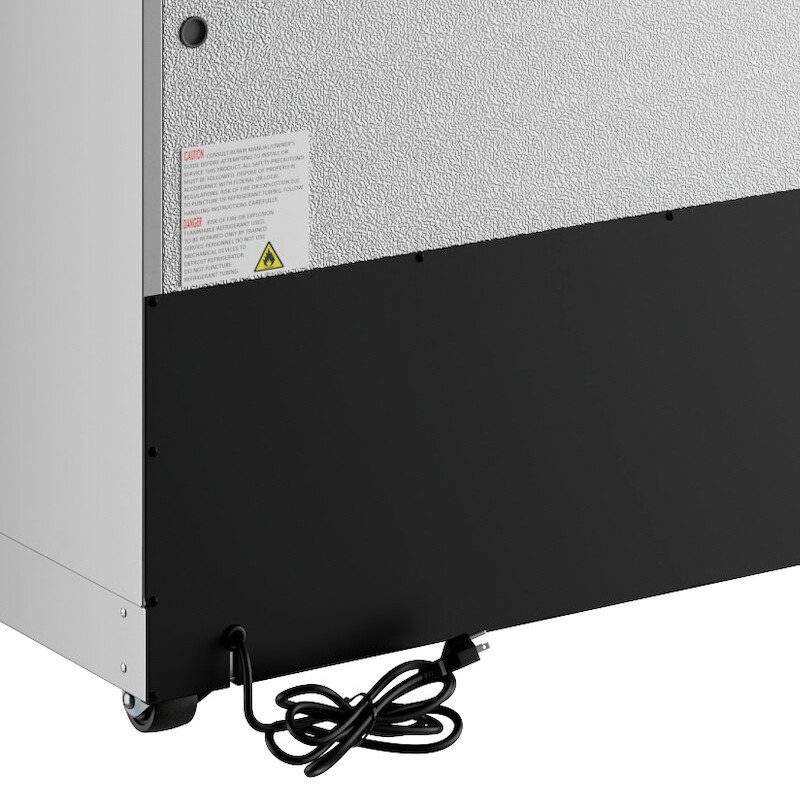 This refrigerator ensures optimal performance by operating with a 1/5 hp refrigeration system that circulates R-290 hydrocarbon refrigerant to maintain temperatures from 33 to 40 degrees Fahrenheit. R-290 refrigerant has an ozone depletion potential (ODP) of 0 and a global warming potential (GWP) of 3. The foamed-in-place polyurethane insulation helps to retain cold temperatures, which ensures that all food held in the unit remains at food safe temperatures and ready for preparation or direct service to customers!