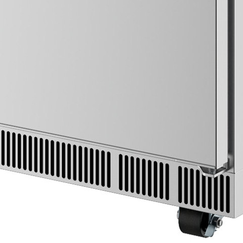 The self-closing and stay-open solid doors allow users to load the unit quickly and easily after a delivery, while the recessed door handles and magnetic door gaskets further expedite the loading process. This worktop freezer ensures optimal performance by operating with a 2/3 hp refrigeration system that circulates R-290 hydrocarbon refrigerant to maintain temperatures from -8 to 0 degrees Fahrenheit. R-290 refrigerant has an ozone depletion potential (ODP) of 0 and a global warming potential (GWP) of 3. The foamed-in-place polyurethane insulation helps to retain cold temperatures, which ensures that all food held in the unit remains at food safe temperatures and ready for preparation or direct service to customers!