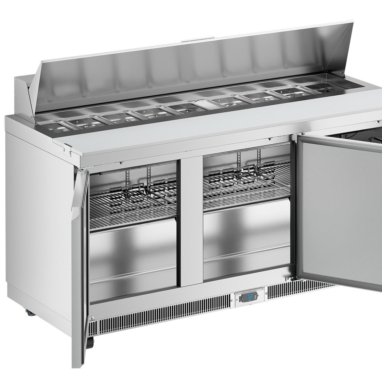 Pizza Prep Models – While 1/3 size pans are the standard to use in pizza prep models, 1/6 size pans may be used when the orientation is changed